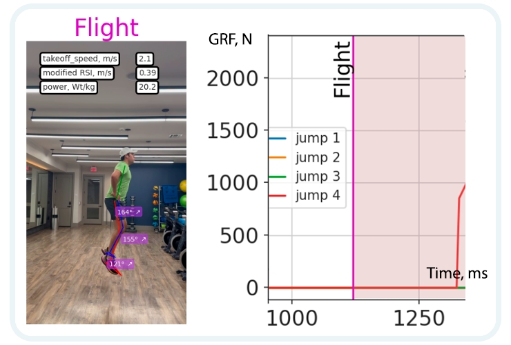 The flight phase is the culmination of all prior phases—braking, deceleration, and propulsion. It reveals how effectively the athlete generates and transfers momentum into the air. Measuring the duration of the flight phase and the corresponding jump height can provide valuable insight into an athlete’s explosive power and performance in sports requiring vertical jumps. For coaches and athletes, monitoring trends in flight time can track improvements in strength and power output.