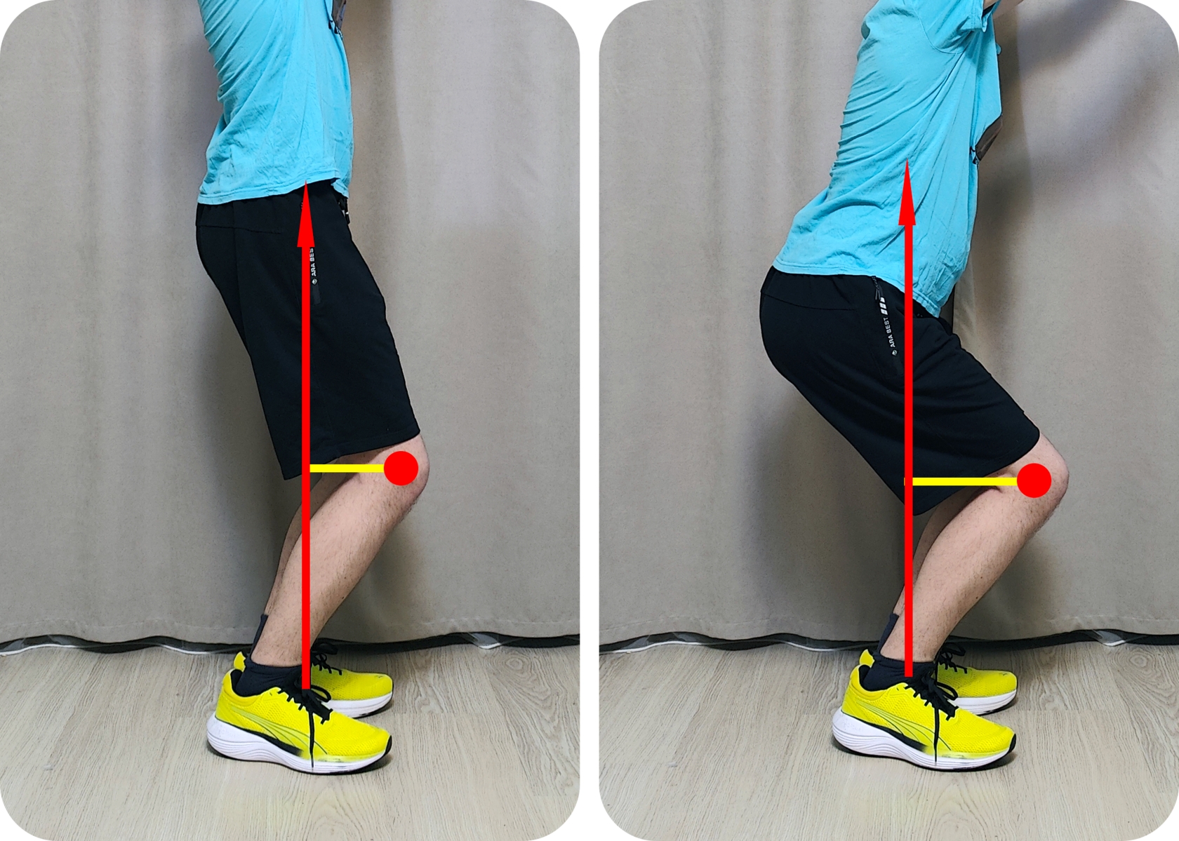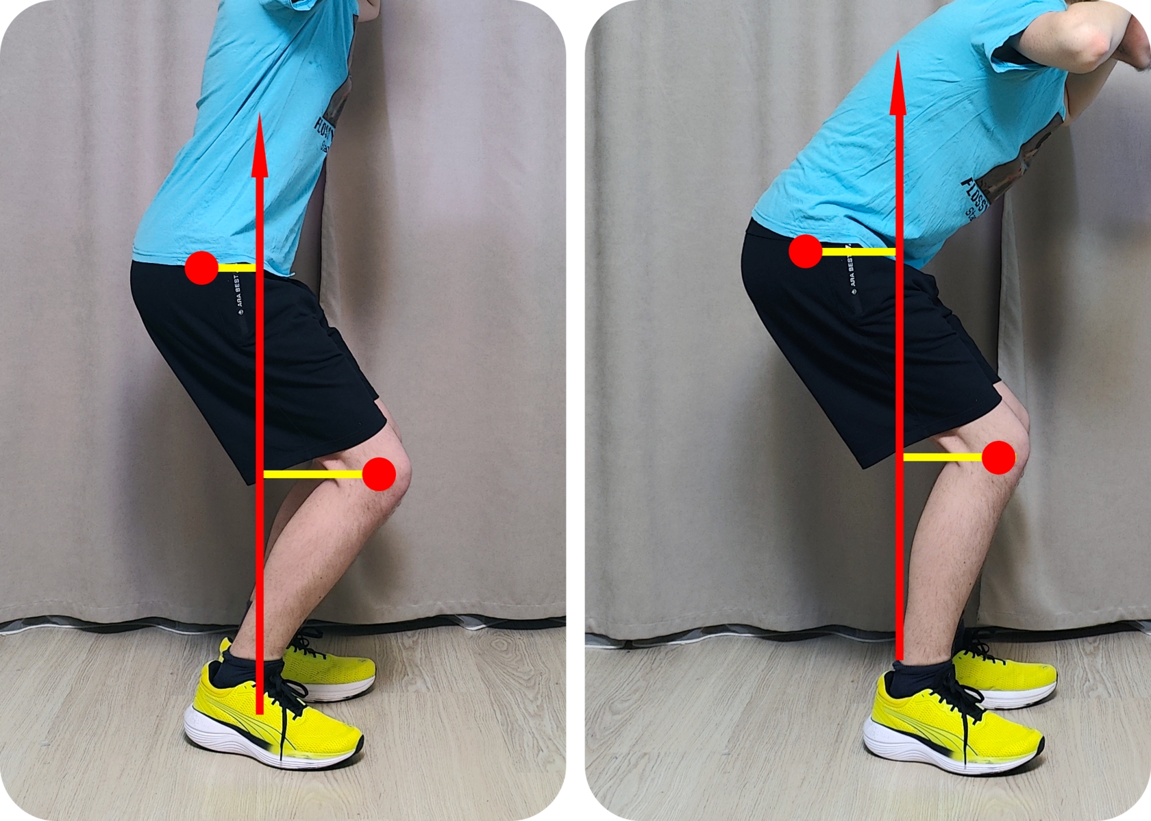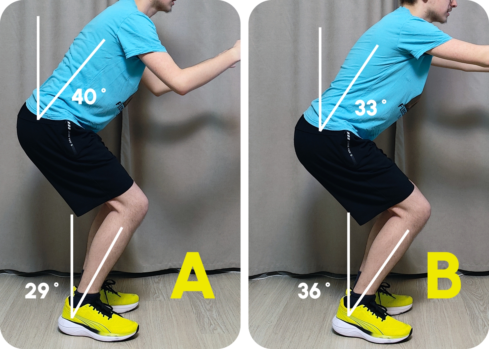 The trunk–tibia angle—how much the torso leans compared to the shins—reveals which muscles are working harder.